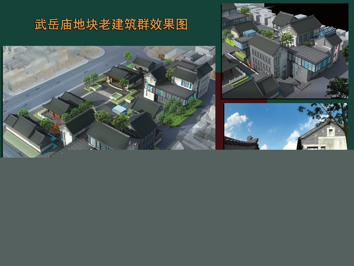 工程規(guī)模:武岳廟項目位于后宰門街東口,縣西巷西側,占地面積 5600平方米,項目分為修繕老建筑和新建建筑兩部分,修繕老建筑的面積約879平方米,新建筑面積約4417平方米(其中包括地下車庫1440平方米)。